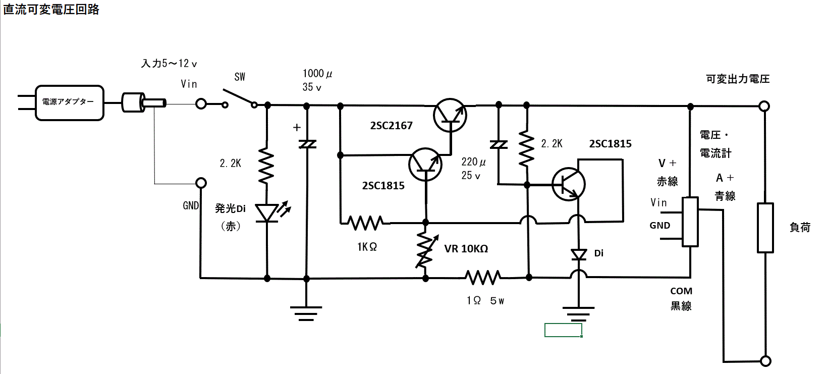 0V~6V 1.5A 電源アダプター7.5V (電源アダプターの電圧が20Vくらいあれば15Vくらいまでは出力できます)