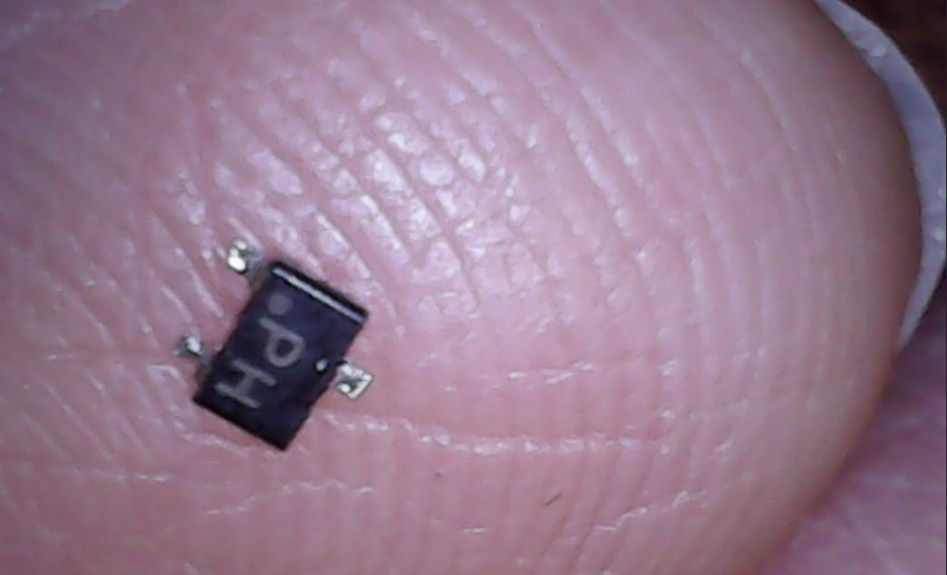 基板上のチップ部品の写真(抵抗、コンデンサー、トランジスタなど)