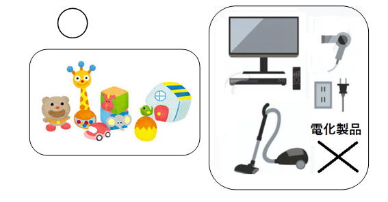 すべてのおもちゃが対象です。ただし、コンセントにつながる電気製品や携帯電話の修理(注1)は、対象外です。